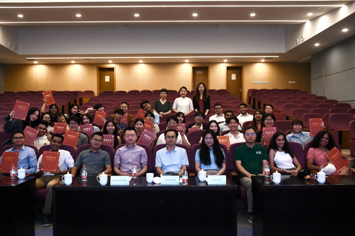国际暑期学校闭幕式于7月12日在农生学院报告厅举行。会议由合作交流办公室王之皓主持。农生学院党委书记侯士兵为大会致辞,他对学员的学习成果表示充分肯定,对付出努力的教师与工作人员表示感谢,并祝福学员们带着在暑期学校中收获的知识与经验,继续在未来的学习与研究中追求卓越。农生学院院长助理高泓博介绍了学院情况及研究生项目,研究生院国际研究生项目主管薛循丹介绍了学校研究生项目情况,并期待能再次在农生学院、在交大见到大家。会上,同学们依次发表了感想,学院为完成课程的同学颁发了证书。
