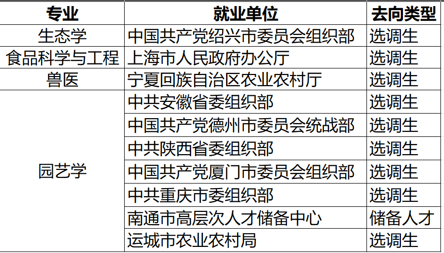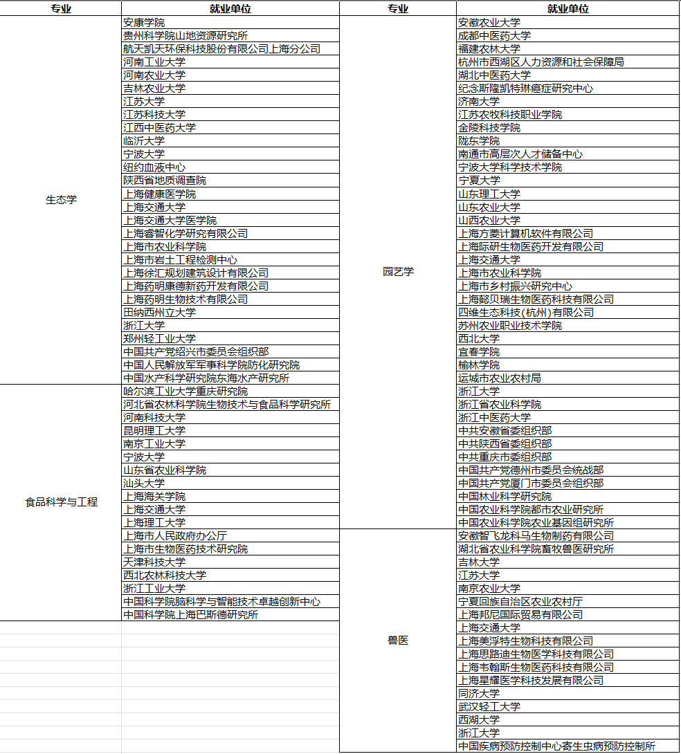 我院立足立德树人根本任务,持续探索综合性大学农科创新人才培养模式,与国内外诸多知名高校加强合作与交流,重点加强研究生的科研能力、应用能力、实践能力、创新能力培养,研究生毕业时掌握扎实的科学基础理论和实验技能,具备在农业、环境、食品、畜牧等相关领域从事研发、生产、管理等各项工作的能力,可在农业、食品、生物、医药、发酵、环境、化工、轻工、IT等相关行业工作,深受各界用人单位的欢迎,年就业率近100%。