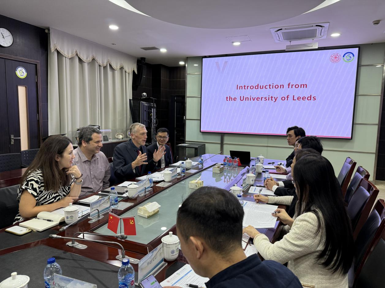 2024年11月7日上午,英国利兹大学生物科学学院协理副院长Ian Wood,环境学院协理副院长Guy Ziv,环境化学教授Laura Carter,国际科研与创新发展主任(亚洲)Hongsen Peng一行访问了黄色网 ,黄色网 及生命科学技术学院参与了此次交流。黄色网 院长助理高泓博,资源与环境系长聘教轨副教授陈钦程、副教授赵琦、博士后周睿人,食品科学与工程系副教授鲁伟,合作交流办公室王之皓、郝雨璇、白玲参会;生命科学与技术学院副院长李丹,研究员张晨虹,研究生教务夏娟,外事秘书李吴頔参会;转化医学院毕磊老师也参加了此次交流。会议由高泓博主持。