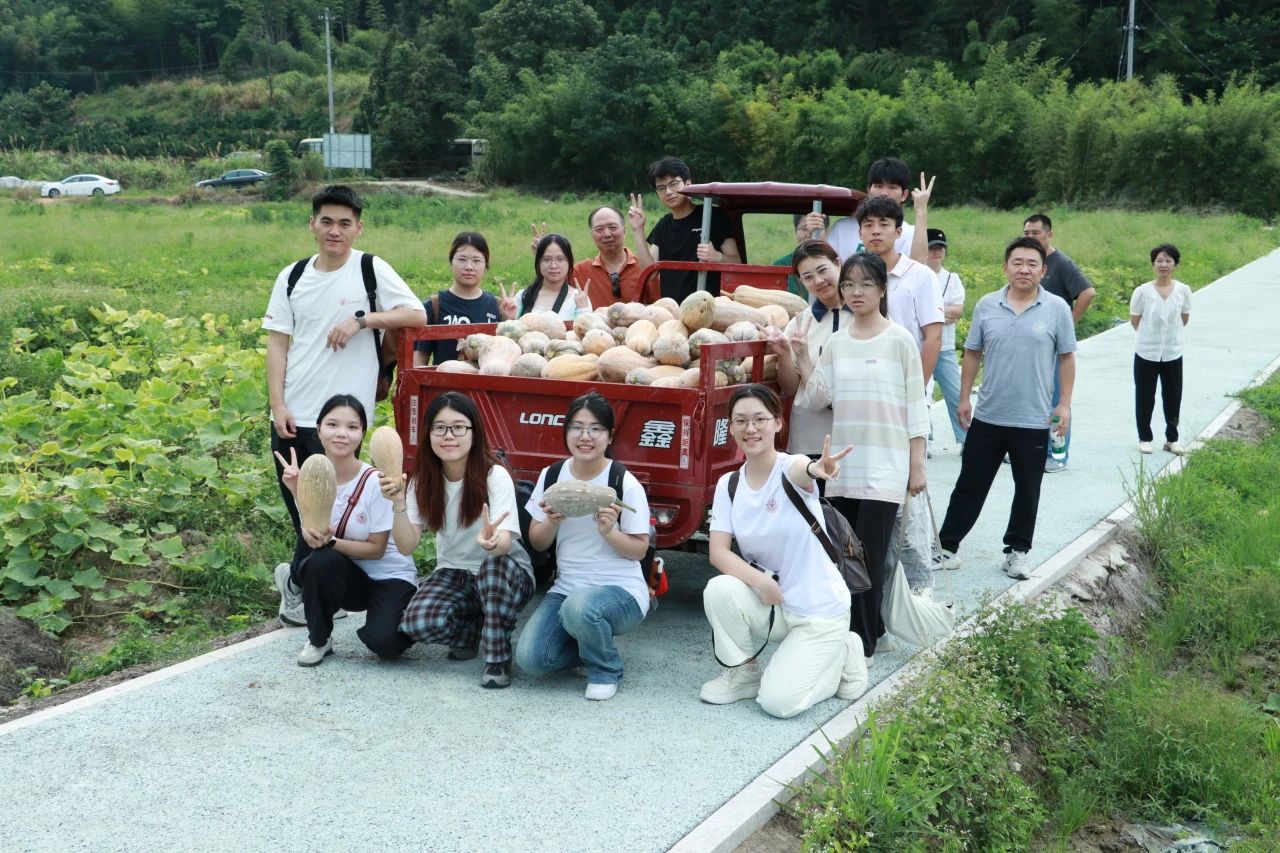 在中央坂农业产业园,实践团学习草莓-大豆套种技术,参观交大农生学院技术支持建设的草莓大棚;在际头南瓜分园,实践团成员下地体验摘南瓜,了解南瓜采摘的要领并帮助农民进行南瓜的装车工作;在乡村振兴示范村-孝坑村,成员们探访柑橘园与西瓜地,洋溪镇人大主席邓巍与孝坑村村支书生动讲述了村民“不让土地闲下来”的勤劳致富故事。