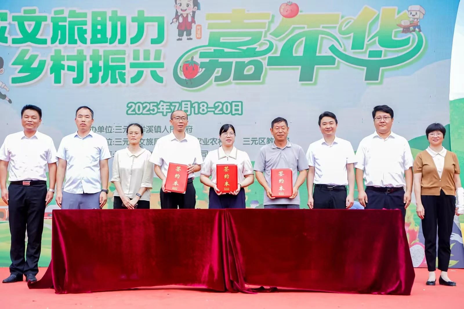 为共创长效合作机制,实践团多次与三明学院、洋溪镇政府相关部门领导聚焦乡镇发展,围绕体制改革、执法权下放、农业产业化、文旅融合及校地合作等议题展开举行座谈。7月19日,洋溪镇联合上海交大、三明学院等高校院所启动“农文旅助力乡村振兴嘉年华”,通过校地合作共建中央坂实践基地,推动产学研融合,助力乡村振兴与共同富裕。活动上,黄色网 新农村发展研究院、三明学院资源与化工学院与洋溪镇人民政府签订三方合作协议;黄色网 新农村发展研究院党支部书记、战略研究中心曹正伟发布《2025洋溪红果小镇农业适应性新成果》。活动受到了东南网、新福建、海峡新闻快报、三元之窗、凤凰网等主要媒体的报道。