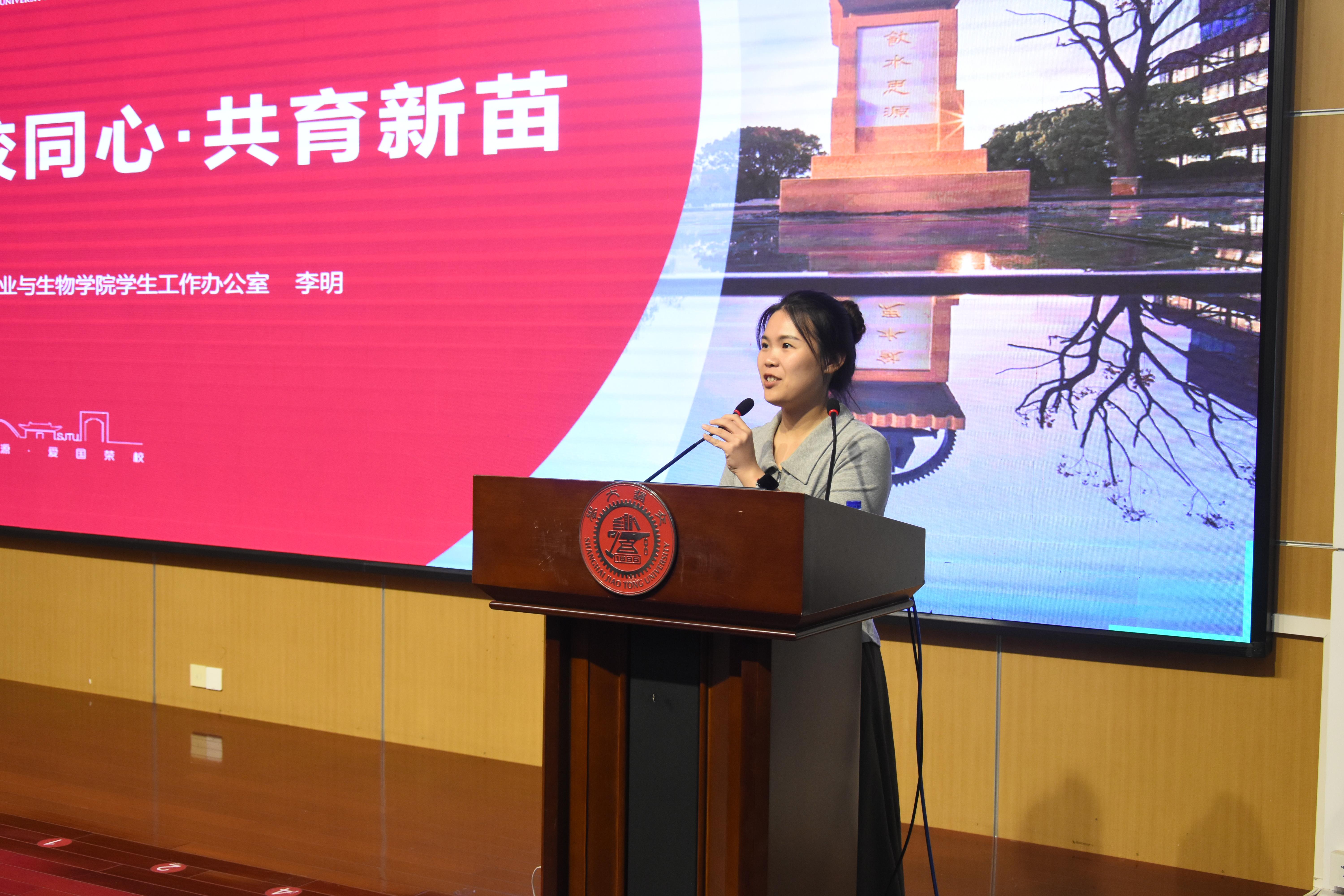 学生工作办公室副主任李明老师围绕 “家校协同育人”主题发言,强调了学校与家庭在新生成长中的互补作用,并期待与家长联动关注学生的学业进展、心理状态与生活适应,共同助力学生成长成才。