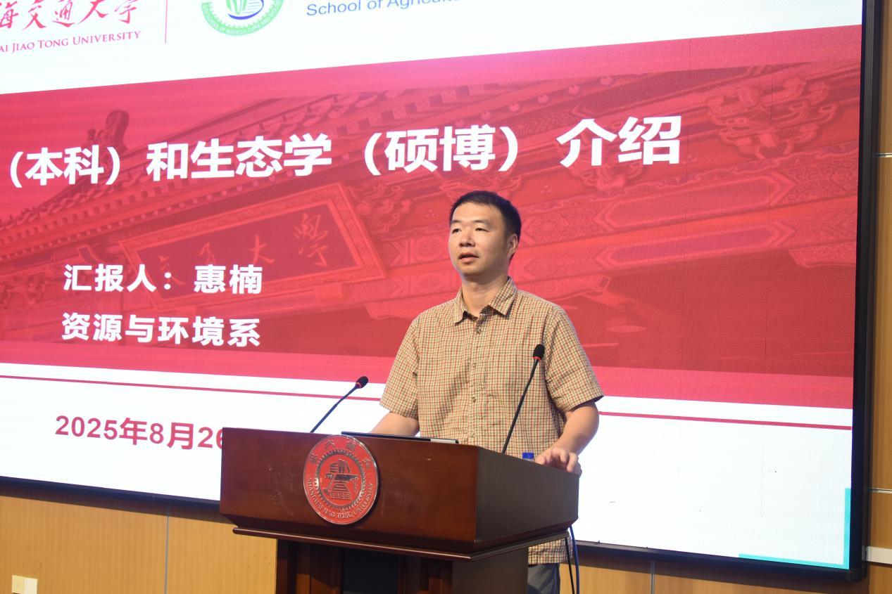 农业资源与环境系党支部书记惠楠以生态学纵深发展关系为切入点,详细介绍了专业实力和培养特色,并介绍了农业资源与环境-环境科学与工程双学士学位项目的基本情况