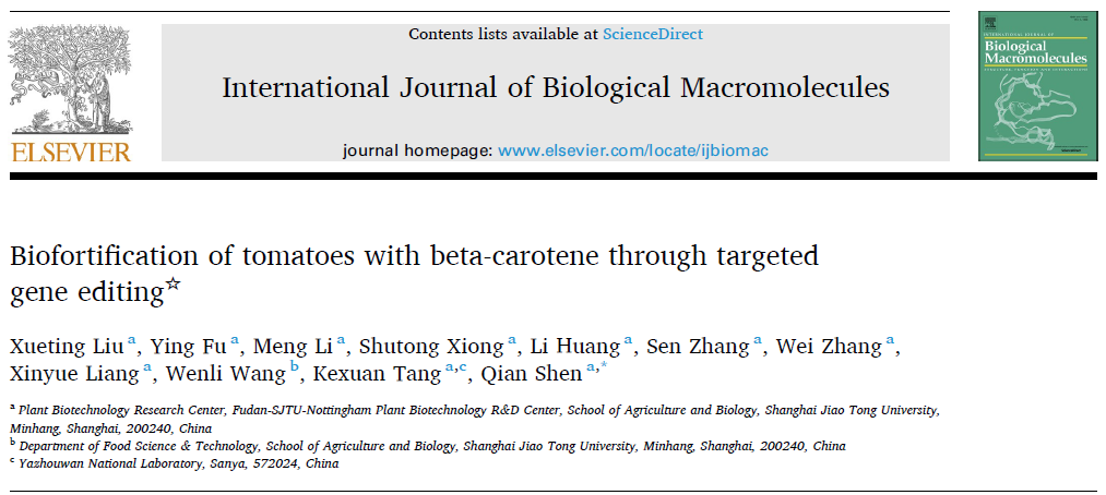 IJBM—沈乾课题组通过基因编辑实现番茄β-胡萝卜素营养强化